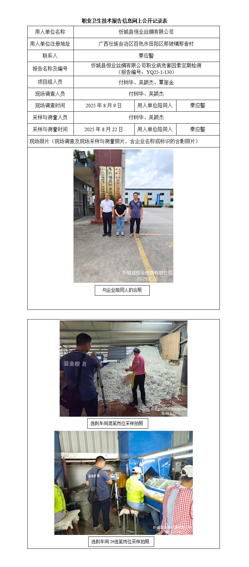 忻城縣恒業(yè)絲綢有限公司職業(yè)病危害因素定期檢測