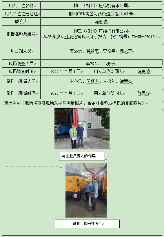 柳工(柳州)壓縮機(jī)有限公司 2025年度職業(yè)病危害現(xiàn)狀評價報告